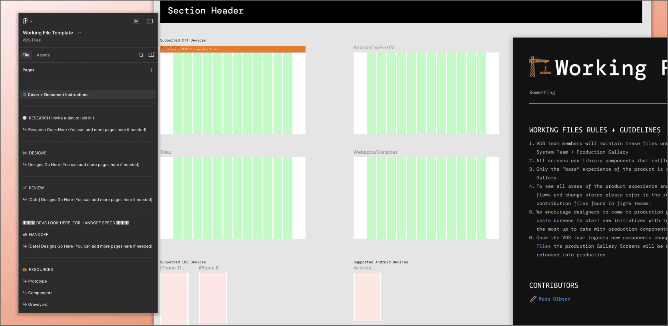 As the Paramount+ design organization scaled from a small team to a multi-platform operation, the need for operational infrastructure became critical. I identified gaps in how design work was documented, communicated, and handed off — and built solutions that brought structure and consistency to a fast-moving environment. These weren't top-down mandates; they were tools and workflows I designed in direct response to pain points I observed across teams.